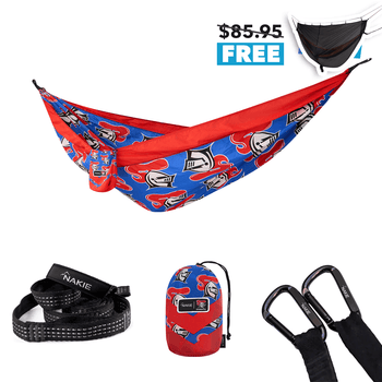 NRL Newcastle Knights x Nakie Double HammockDimensions: 3m × 1.8mWeight rating: 225kgWeight: 600g 2 × Hammock StrapsLength: 2.3m per strapWeight...