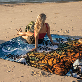 Recycled Sand Free Beach Towel Dimensions: 160cm × 90cm Weight: 740 grams Water Proof Storage Bag Dimensions: 25cm × 20cm