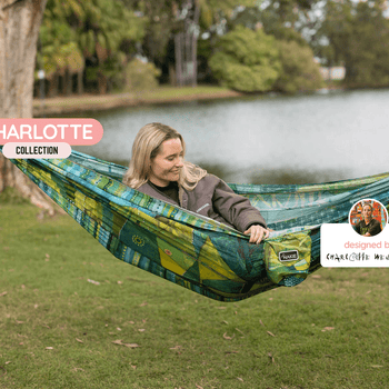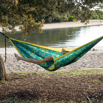 The Nakie hammock camping set up combines our double hammocks with our durable bug nets, cosy outdoor blankets and rain tarps to create the ultimate stress free camping trip. Our gear will help you set up a comfortable, insect free and dry camp anywhere you can hang your hammock!