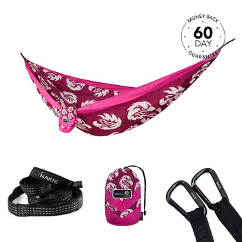 NRL Newcastle Knights x Nakie Double HammockDimensions: 3m × 1.8mWeight rating: 225kgWeight: 600g 2 × Hammock StrapsLength: 2.3m per strapWeight...