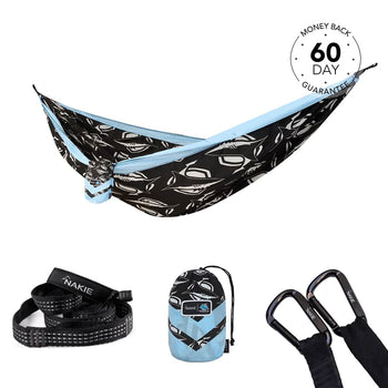 NRL Cronulla Sharks x Nakie Double HammockDimensions: 3m × 1.8mWeight rating: 225kgWeight: 600g 2 × Hammock StrapsLength: 2.3m per strapWeight r...