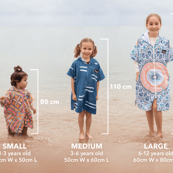 1 × Hooded Towel Sand Free Size Small (Recommended Age 1-3) Dimensions: 45cm Wide × 50cm Length Weight: 340grams   Storage bag: Dimensions: 25cm ×...